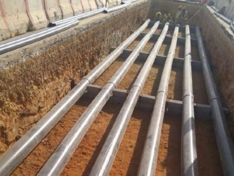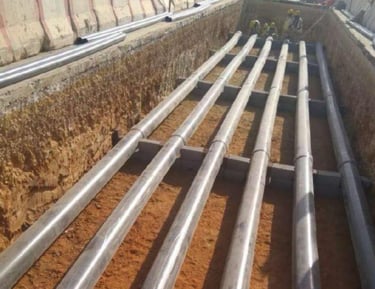 Underground cabling for wind turbines, ensuring safe and efficient energy transmission.
